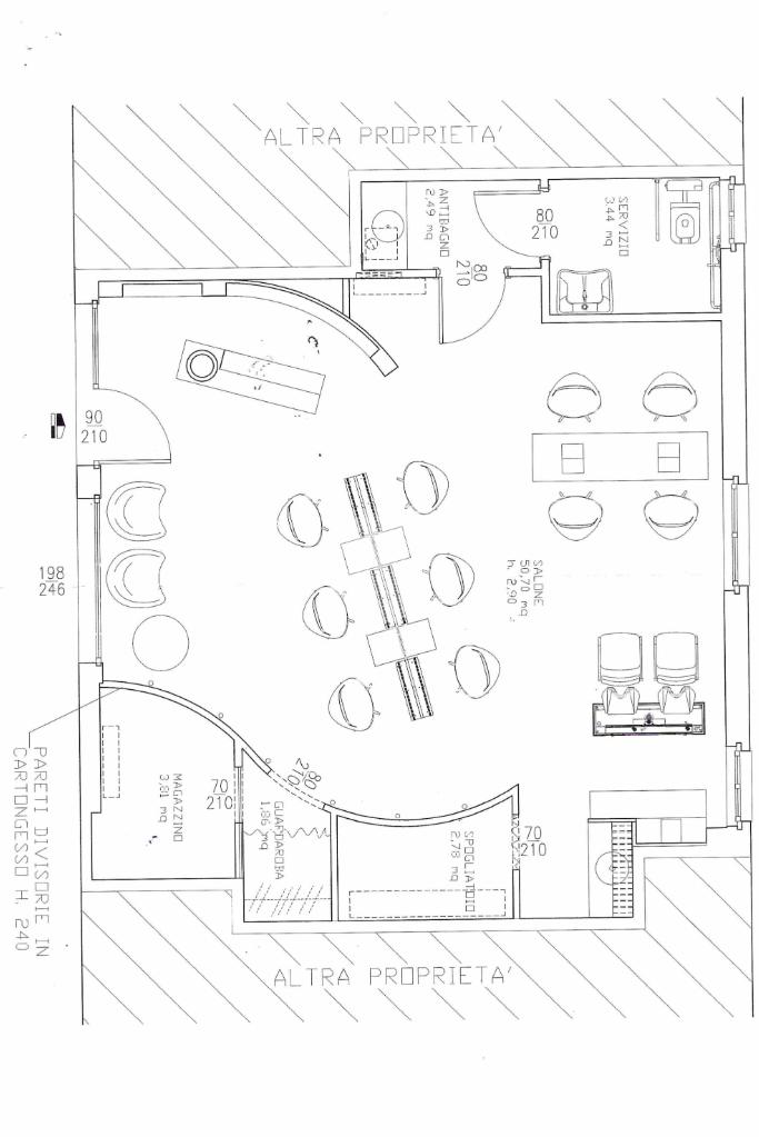 L’immobile si presenta come un unico locale open space, dotato di servizio igienico con antibagno, accessibile tramite un ingresso indipendente ricavato in una delle due ampie vetrine affacciate sul piazzale condominiale.