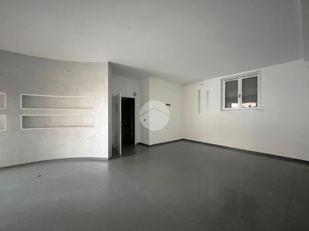 L’immobile si presenta come un unico locale open space, dotato di servizio igienico con antibagno, accessibile tramite un ingresso indipendente ricavato in una delle due ampie vetrine affacciate sul piazzale condominiale.