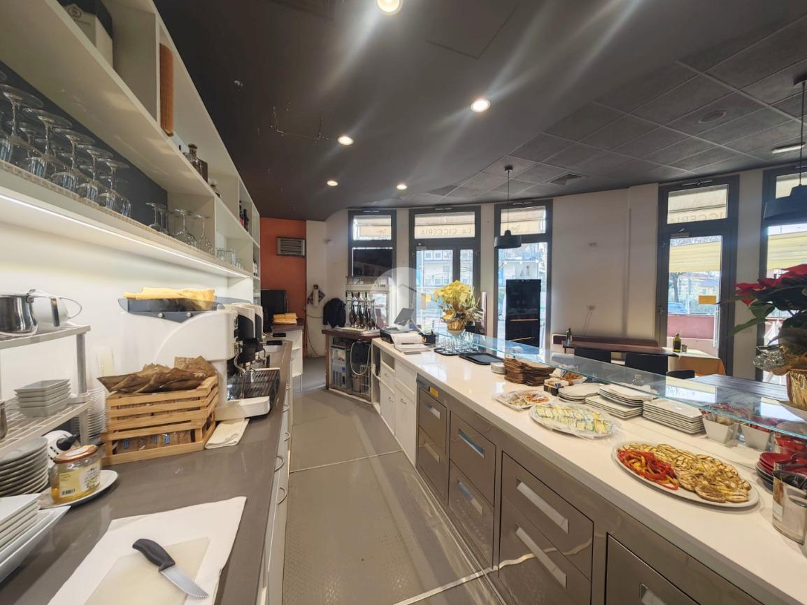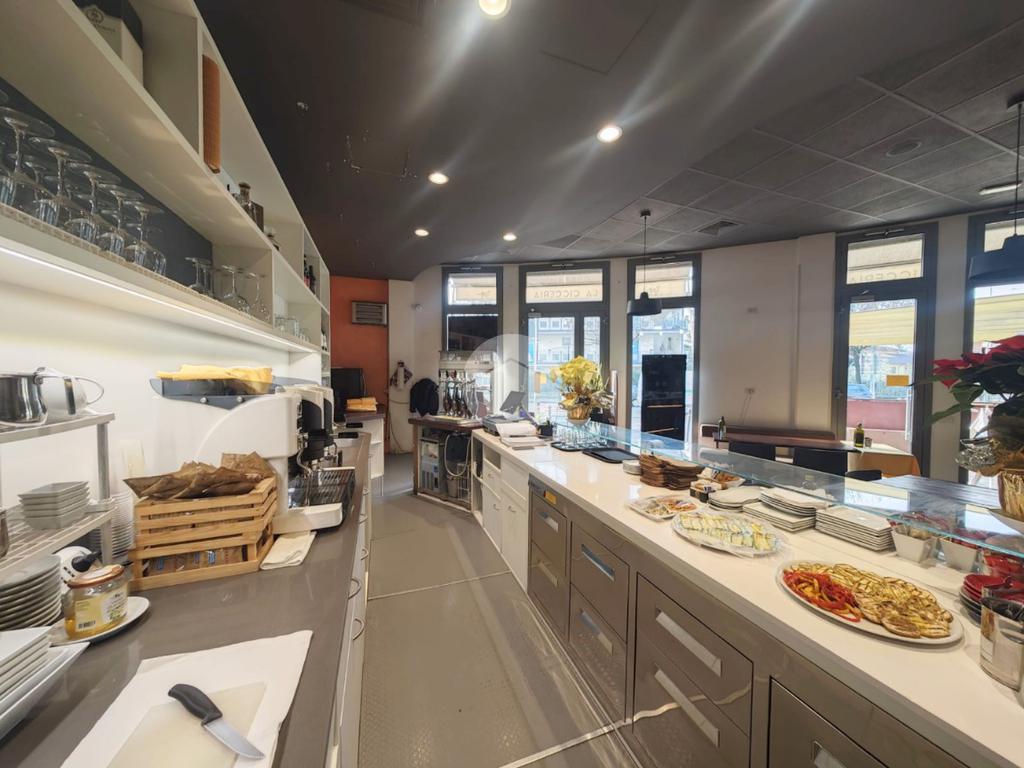 La disposizione degli ambienti al . è così suddivisa: un'ampia zona somministrazione con circa 50 posti a sedere ed un bancone bar, completamente riscaldata e raffrescata tramite fan coil a soffitto; un'ampia zona cucina attrezzata, con canna fumaria e servizi igienici.