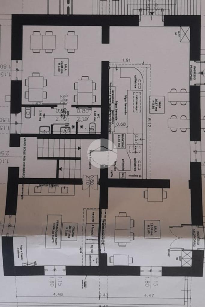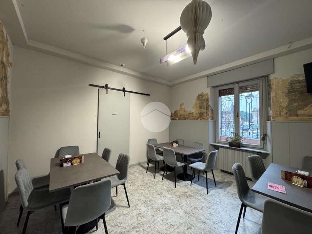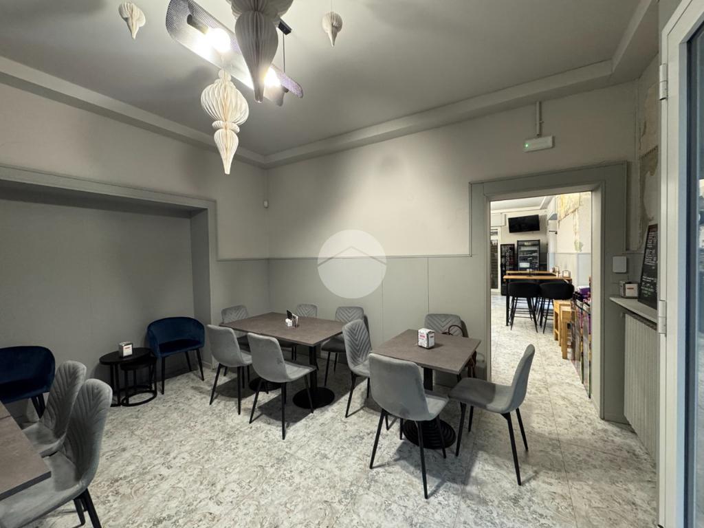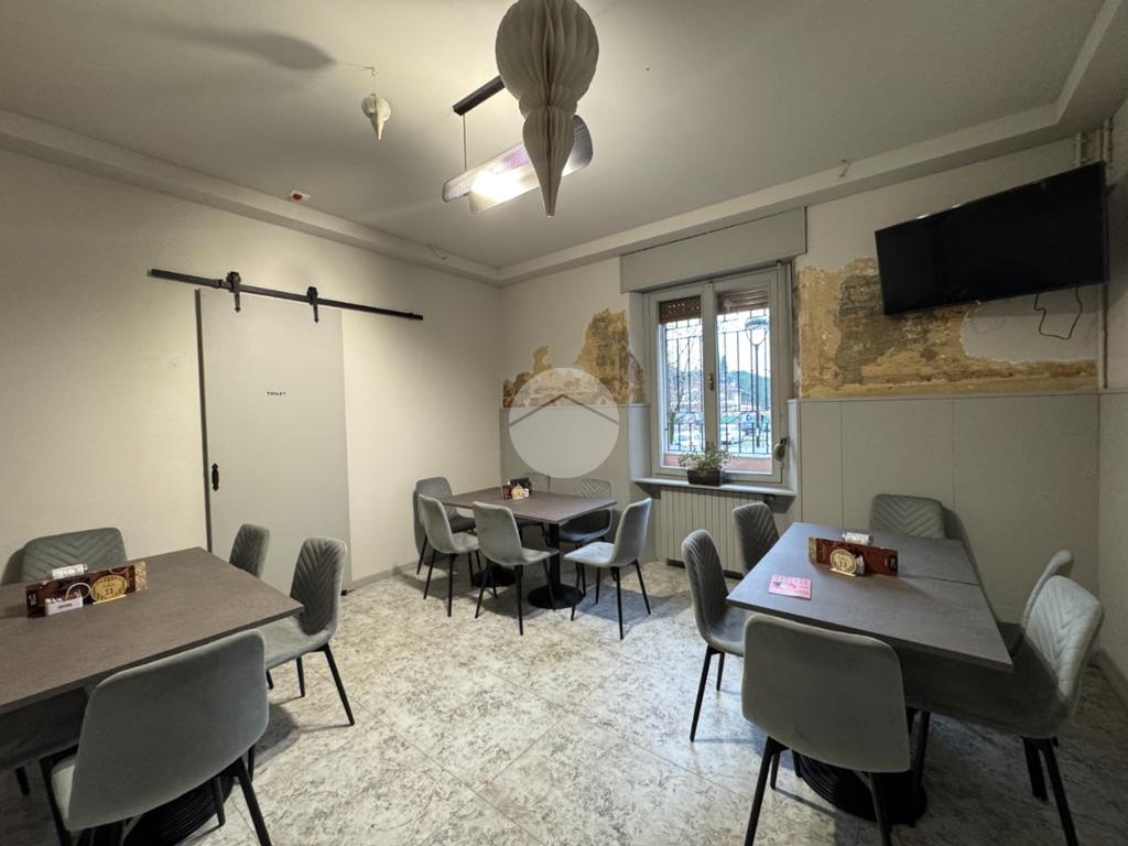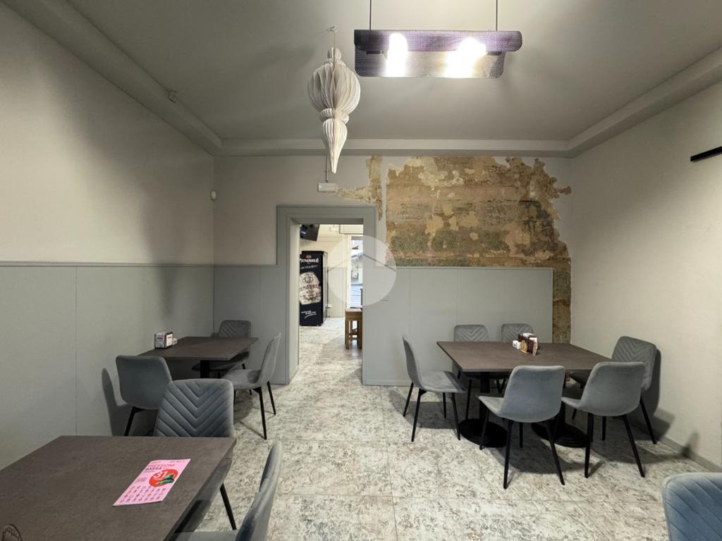 L'immobile, di circa 110mq, è cosi suddiviso: ingresso con ampio bancone, due sale laterali, una cucina attrezzata con cappa ai carboni attivi ed eventuale possibilità di installare canna fumaria, doppio servizio igienico per uomo/donna e a norma disabili.